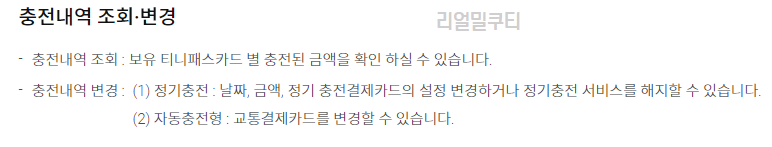 월 정기충전을 하시다가 변경을 하고 싶거나 조회를 하고 싶은 경우에는