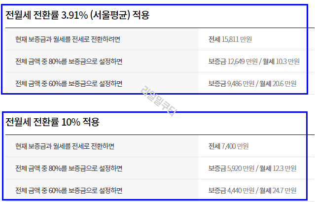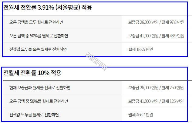 계산해보면, 전월세 전환률 4.33%, 10%가 적용되어 나왔습니다.