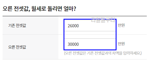 저는 기존 전세값 2억 6천에 오른 전세값 3억을 넣어봤습니다.