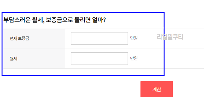 아래 부동산 114 링크를 통해 반전세 계산기를 사용해 봅시다.