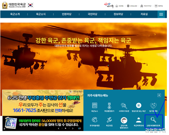 1. 포털에서 육군을 검색하면, 아래 링크 육군 홈페이지가 나옵니다.
