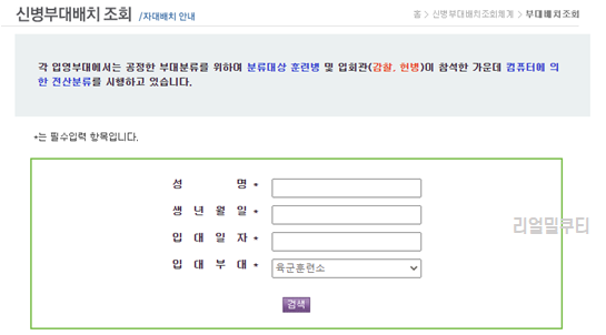 ▶ 신병 부대 배치, 육군 자대 조회