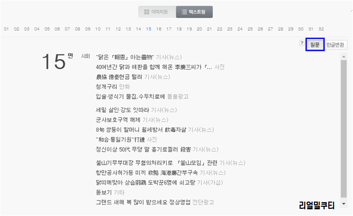또한 텍스트형태로 기사제목을 누르면, 그 기사가 있는 신문으로 연결이 됩니다.