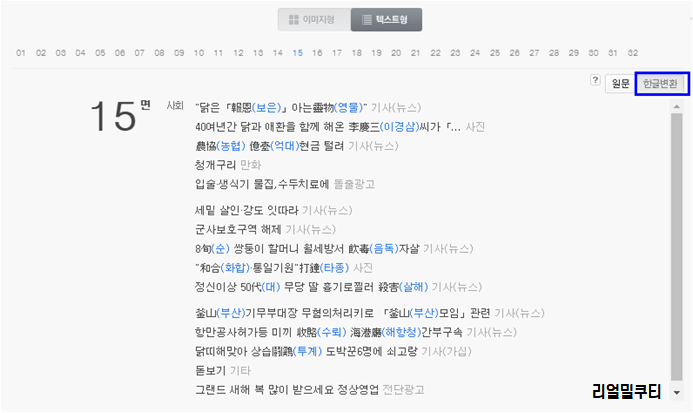 또한 기사를 클릭하면 텍스트 보기나 스크랩 하기 기능도 있습니다.