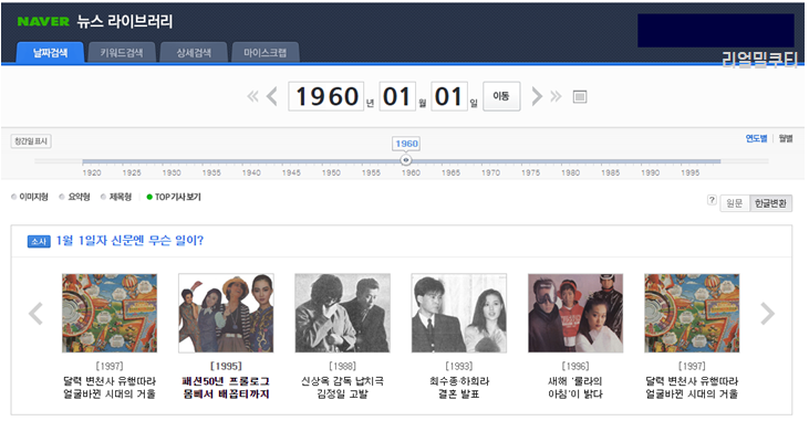 네이버 뉴스 라이브러리에 가시면 날짜검색/키워드검색/상세검색을 하실 수 있습니다.