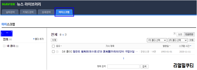 ▶네이버 뉴스 라이브러리 키워드 검색