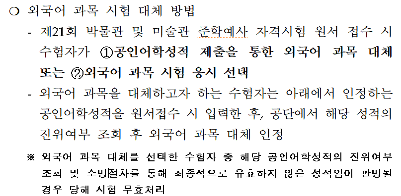 외국어 과목을 외국어능력검정시험으로 대체할 경우에는 예외입니다.