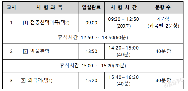 전공선택과목 2과목을 200분(약 3시간30분)동안 본 뒤,