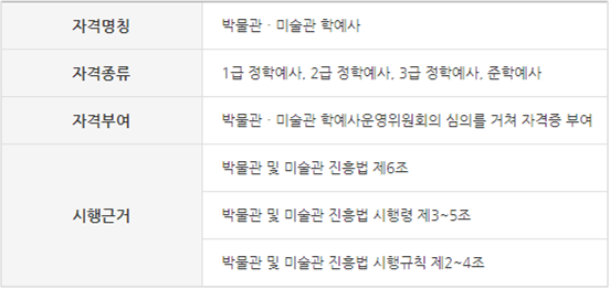- 1급~3급 정학예사 및 준학예사가 있습니다.