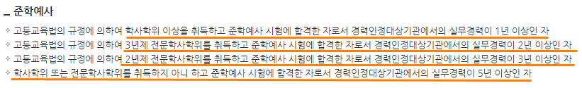 - 학부졸업 이후의 경력부터 인정된다고 합니다.