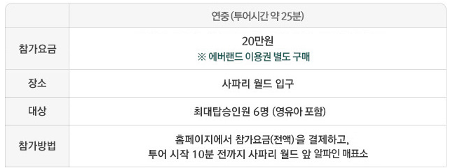 에버랜드 사파리 스페셜 투어 요금 가격 본문