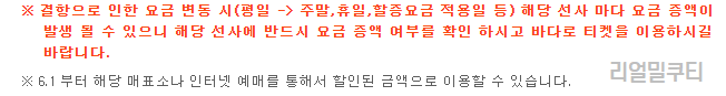 결항 등 일부 일정에는 할인률이 달라질 수 있다고 합니다.
