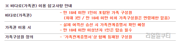 ○ 바다로-가족권은 가족구성원 중 만 18세 미만인 사람이 있으면 가능합니다.
