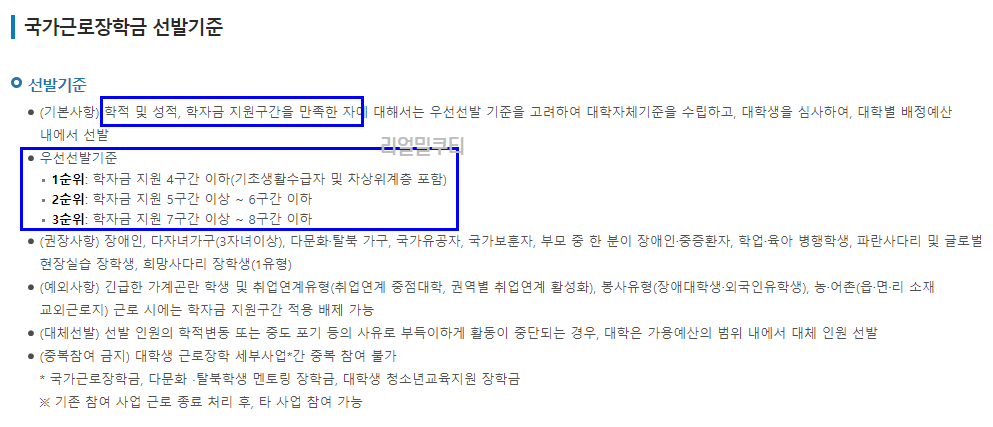 - 국가근로장학금의 선발 절차