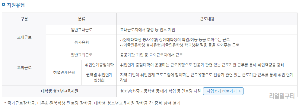 ▶국가근로장학금 지원 유형