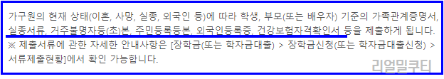 · 모든 서류는 학자금 신청일 전 1개월부터 발급된 서류만 인정되며, 인터넷 및 무인발급기에서 발급한 경우에도 인정됩니다.