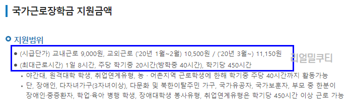 ▶국가근로장학금 지원금액