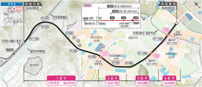 검단신도시 인천 지하철 1호선 연장은 검단신도시 조성으로 발생되는 교통수요 증가를 흡수하고, 도시철도망 연결 강화로 지역발전 및 주민들의 교통편 이용에 편의를 향상시키기 위하여 계양역 부터 검단신도시까지의 6.825km(3개 정거장)를 연장하여 건설하는 사업입니다.
