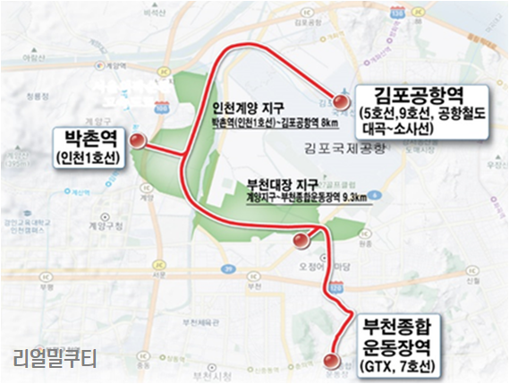인천계양~부천대장 노선의 경우 김포공학역에서 부천종합운동장역을 경유하여 3기 신도시인 계양 및 대장지구를 인천역 1호선, GTX, 7호선 등 근접한 주요 지하철역으로 연결합니다.