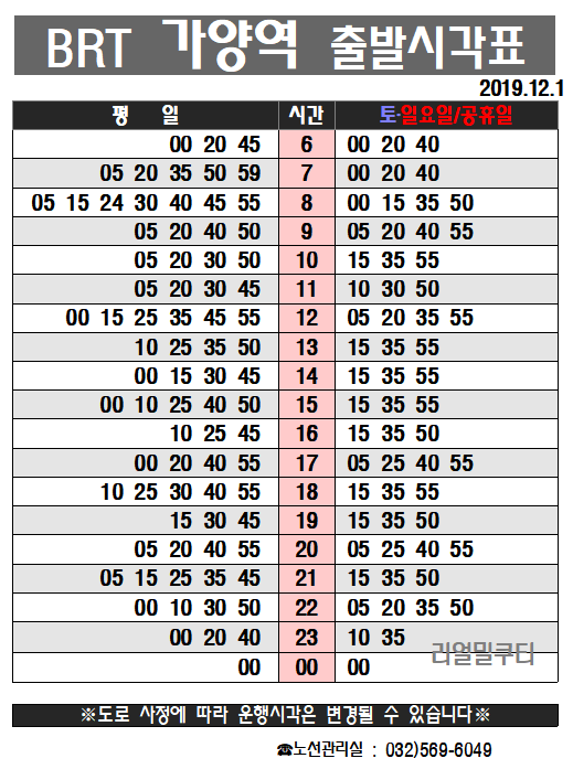 ▶인천 BRT 운행 시간표