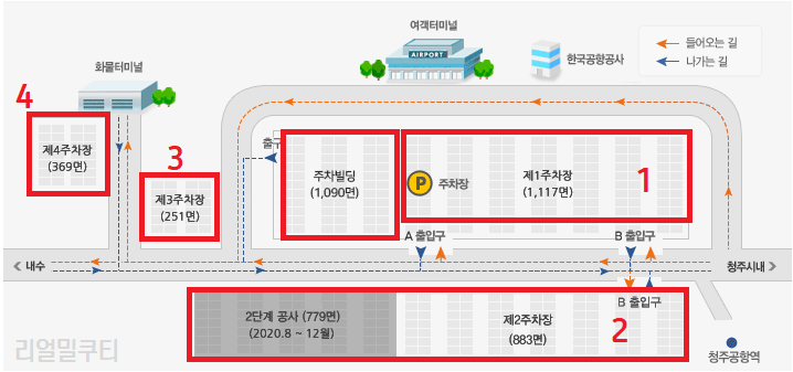 청주공항 주차장은 제 1~4주차장이 있습니다.