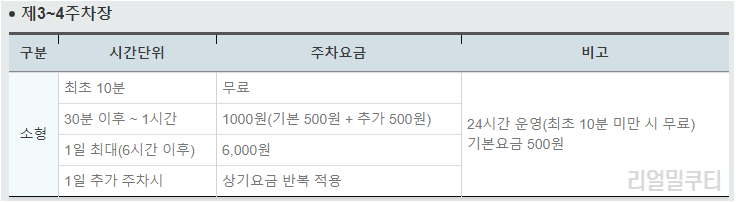 ◇제 3,4 주자창 및 주차빌딩의 주차요금은 아래와 같습니다.