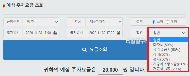 ▶청주공항 주차요금 예상 조회