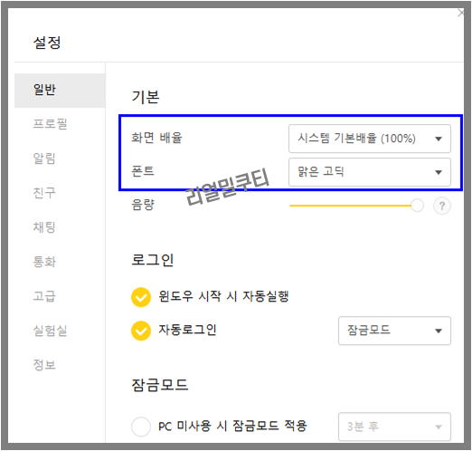 ▶카톡 PC 버전 글자 크기 키우는 방법