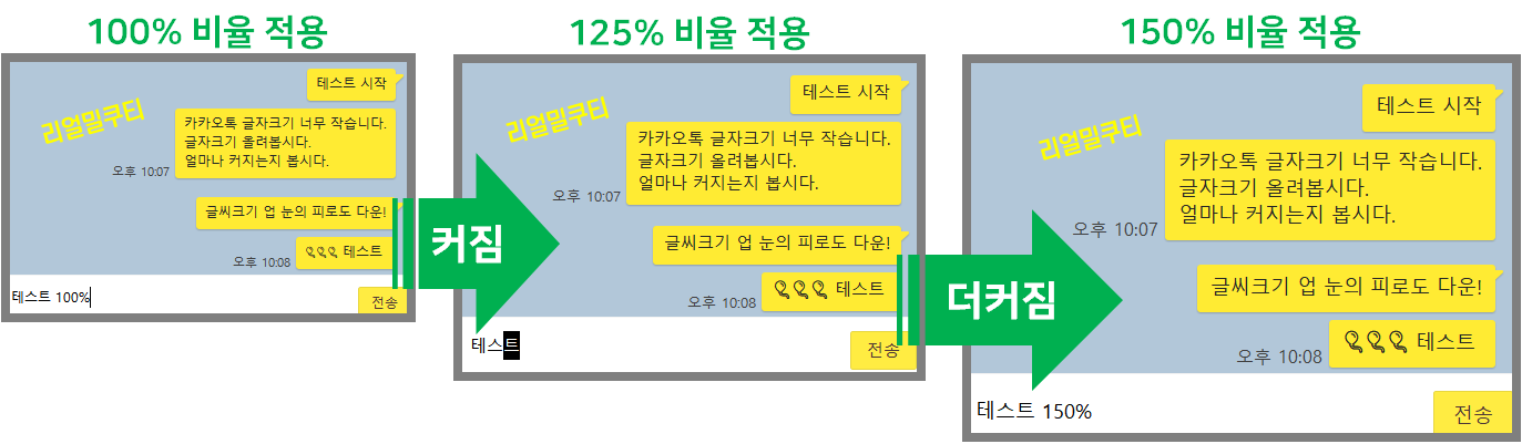 카카오톡은 시스템 배율로만 움직이게 되어 있더군요.