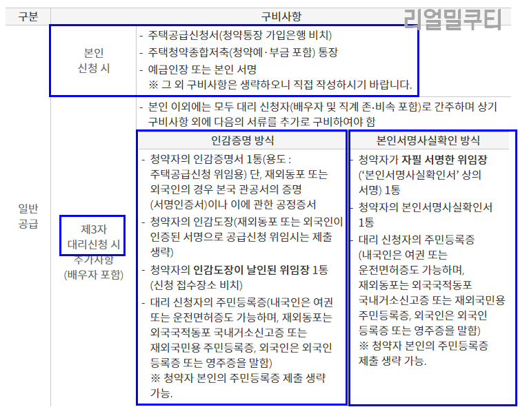 아래는 은행지점에 방문하여 청약 신청할 경우에 필요한 구비서류입니다.