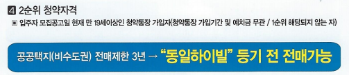 - 아파트 1순위, 2순위만 가능하며 특별공급은 불가능합니다.