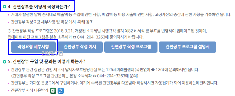 참고로 간편장부 작성 프로그램 관련 문의전화는 본청 소득세과 ☏ 044-204-3263으로 문의하시면 됩니다.실제 서비스 되고 있는 프로그램 사용자는 해당 서비스 회사에 문의하시면 되겠습니다.