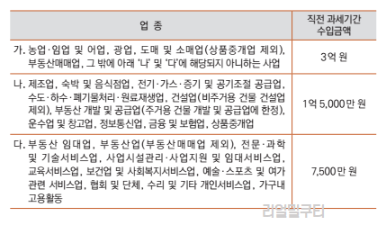 간편장부는 누구나 사용할 수 있는 것은 아니며, 당해연도에 새로이 사업을 시작하였거나 직전 과세기간 수입금액의 합계액이 아래 표에 제시된 금액 미만인 사업자만이 사용할 수 있습니다.