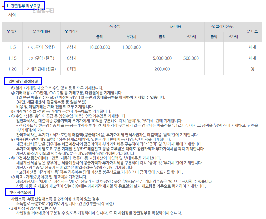 간편장부 작성요령이 나옵니다. 잘 읽어보세요.
