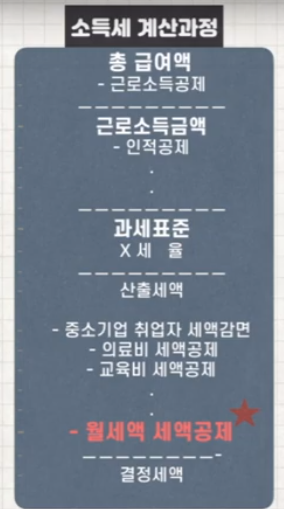 월세액 세액공제 = 지급한 월세액 (한도: 750만원) * 공제율 10% ~12%