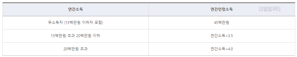 - 일반가구 및 신혼가구(무자녀 및 1자녀 가구): 수도권 3억원, 수도권 이외 지역 2억원