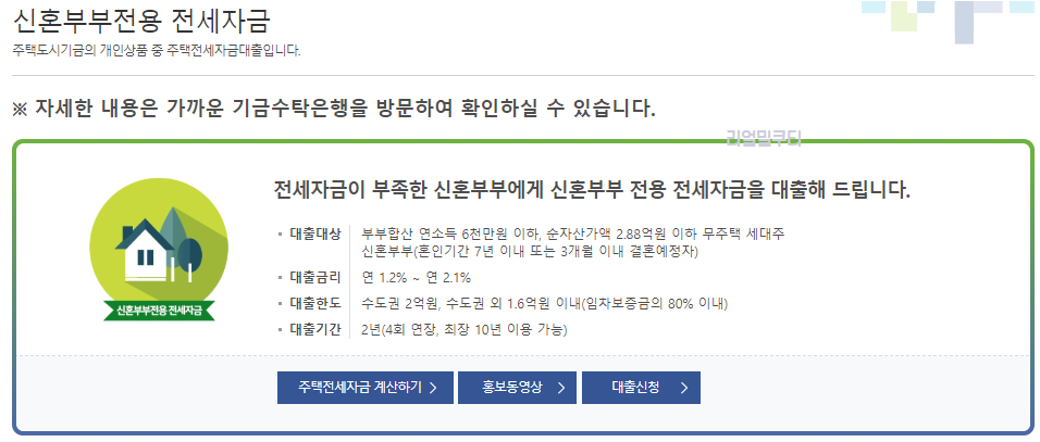 밀쿠티가 먼저 정리할 전세대출은 주택도시기금의 개인상품 중 신혼부부전용 전세자금입니다.