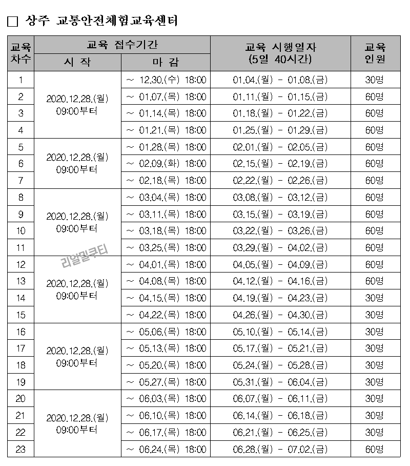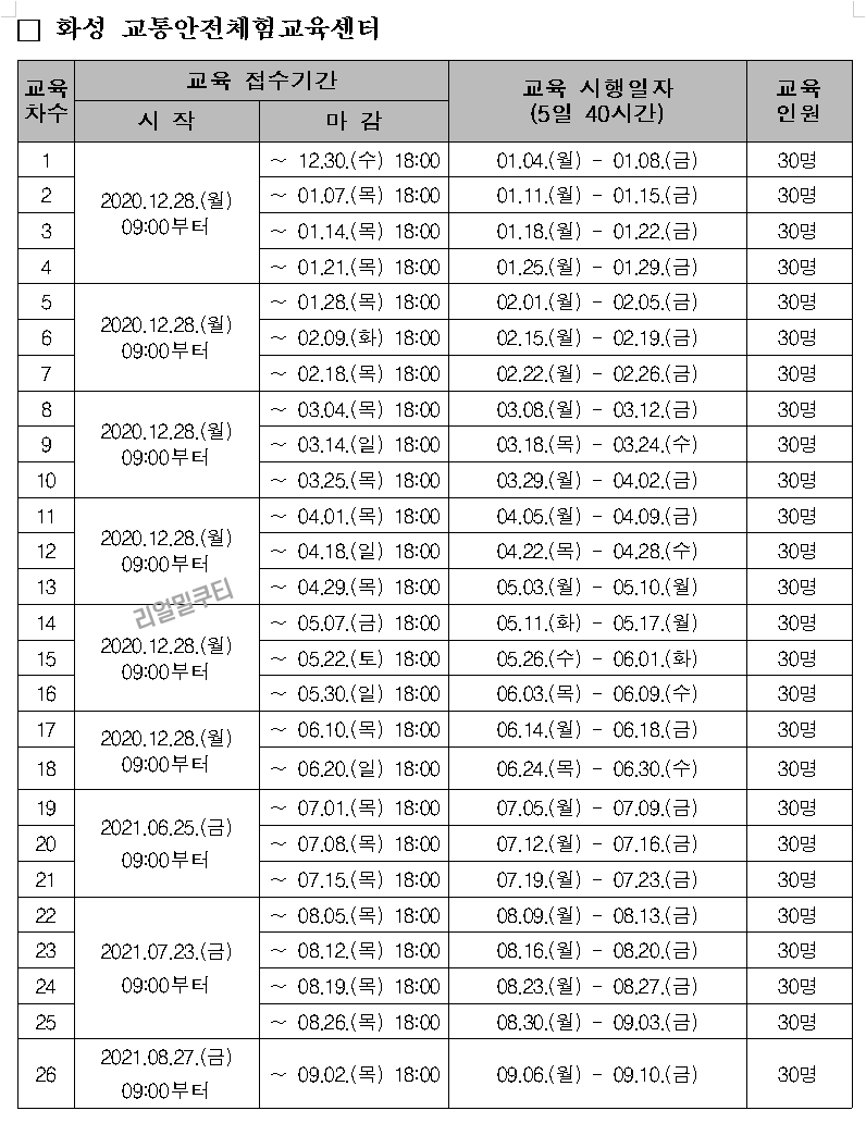 ▶화성, 상주 교육접수 및 교육시행 일정 시간표