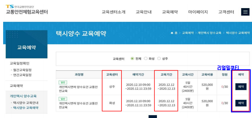 개인택시면허 양수요건 교통 교육 접수 신청 방법 2021 본문