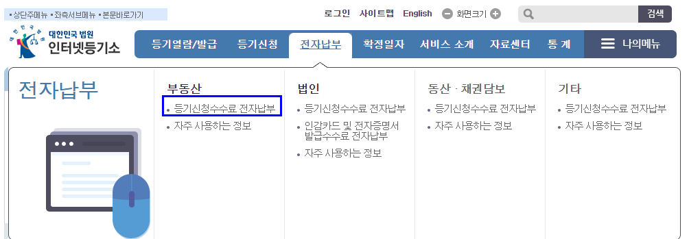 - 인터넷 대법원 등기소에서 납부가 가능합니다.