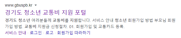 1. 모바일 또는 PC 인터넷 검색창에 경기도 '청소년 교통비 지원 포털'을 검색해주세요.