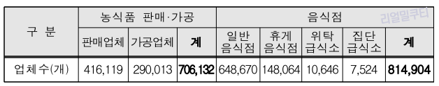 - 1,521천 개소(농산물 706, 음식점 815)