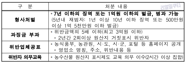 1) 원산지 거짓표시 : 형사고발 및 위반자 공표 등