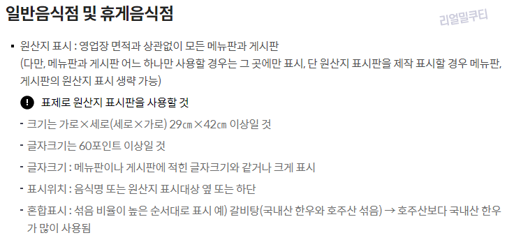 따라서 영업점 형태와 상관없이 원산지 표시대상 가공품을 포함한 농축산물 품목을 판매하거나 가공하는 경우는 원산지를 표시해야 합니다.