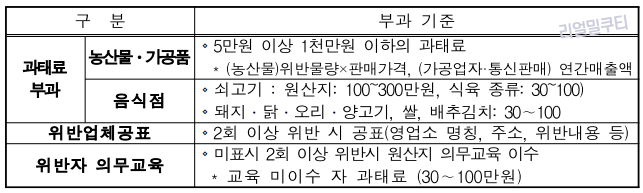 또한 2년간 2회이상 원산지를 거짓으로 표시한 위반자에는 위반금액의 최대 5배까지 과징금을 부과합니다.