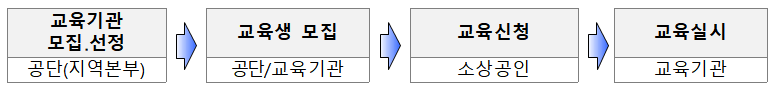 ○ 공단 온라인 신청/접수 -> 교육생 모집 및 신청 -> 교육 실시