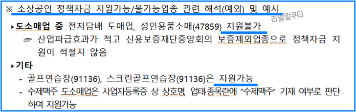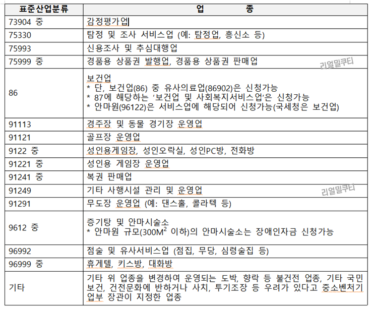 - 지원제외 업종* 및 비영리 사업자/법인