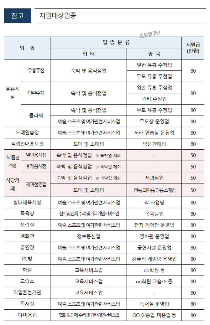 유사업종의 경우 문의 후 지급여부가 결정된다고 하니 그림에 없는 유사업종의 경우 문의해보시길 바랍니다.