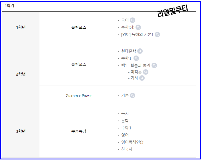 1학년 - 올림포스 독서, 수학(하), 영어-독해2