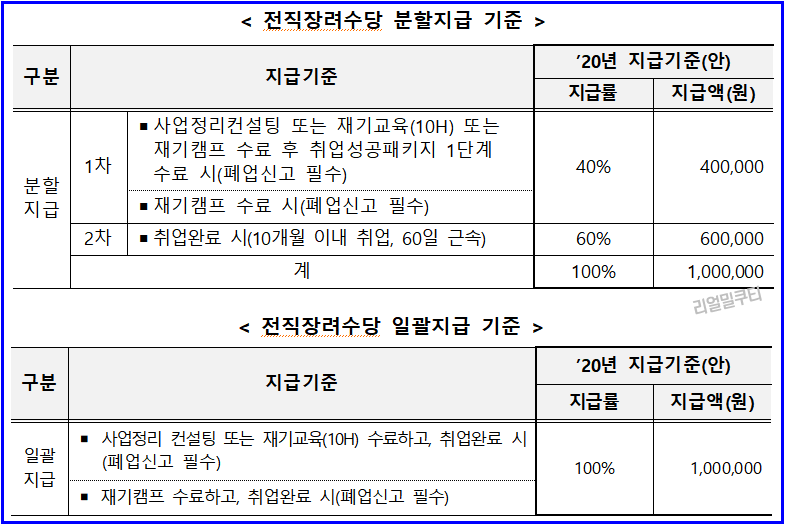 - 전직장려수당 분할지급 및 일괄지급 기준액